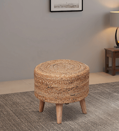 Stool in braided jute and with wooden legs in natural color, by Sheen Decor